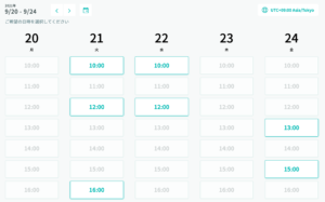 - ・スピーディーに対応するため、翌日から1週間後までの近い日時を選べる設定にする